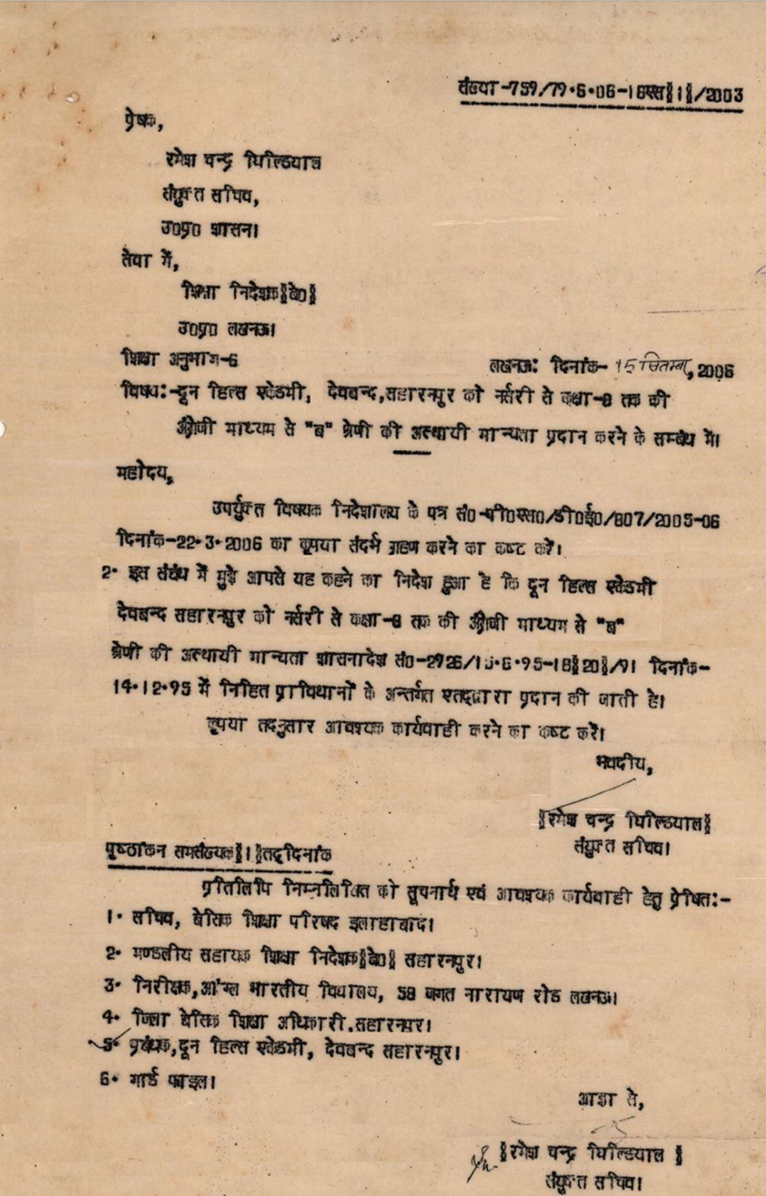 | 7 | School Email ID | doonhillsdeoband@gmail.com |